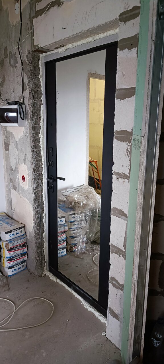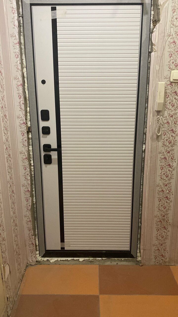 Теперь у меня- отличная дверь! Всё как хотела: чёрная ручка и накладки, внутренняя панель в одном цвете и стиле с межкомнатными дверями, белая с зеркалом. Отличная шумоизоляция, наконец, избавились от второй двери на входе в квартиру. Установщики Макс и Андрей- супер! Всё быстро и качественно сделали.