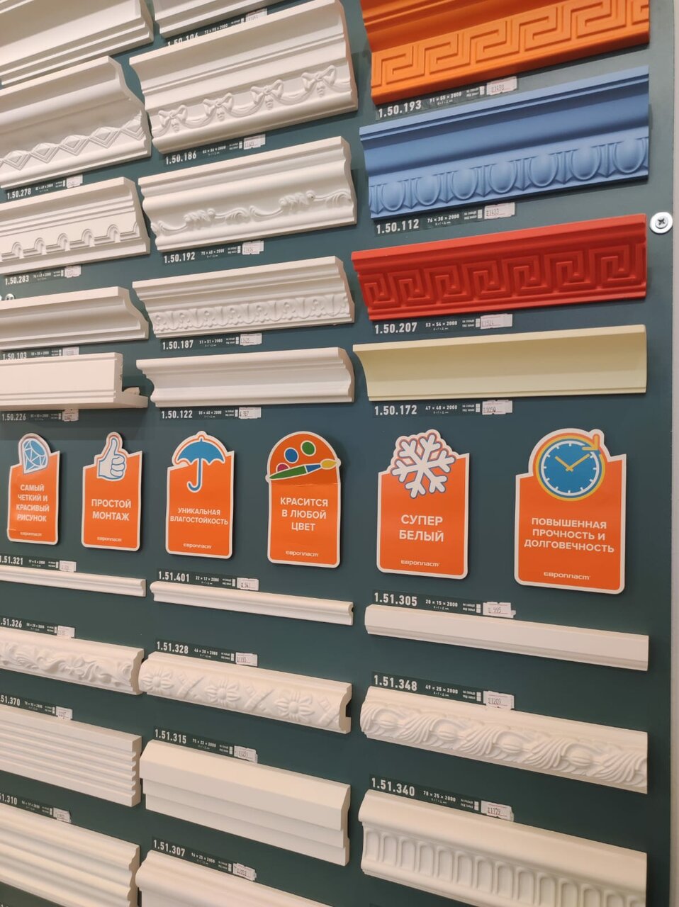 Европласт — строительный магазин в Санкт-Петербурге, предлагающий лепнину из полиуретана и стеновые панели для ремонта и отделки. Расположен по адресу: Дальневосточный проспект, 14, этаж 1, секция 101. Режим работы: пн-пт 11:00–20:00, сб-вс 11:00–18:00. Контакты: +7 (812) 500-09-35, сайт: (https://evroplast.top/).