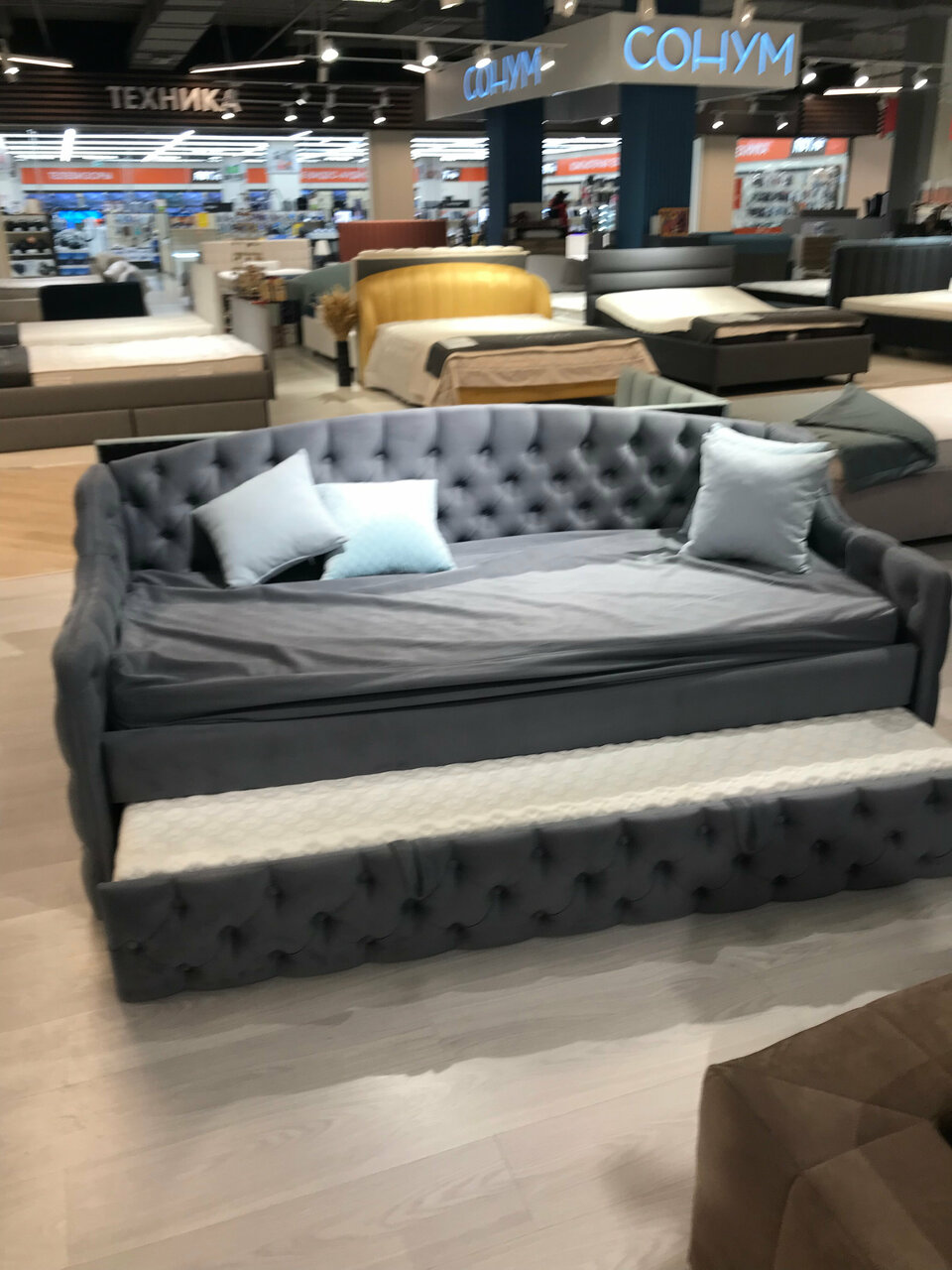 Выбор мебели большой, но уровень цен достаточно высокий, хотя при желании и терпении можно потратив немало времени найти и хорошую мебель по скидкам и акциям. Один большой минус для торгового комплекса — отвратная работа вентиляции, в любое время года очень душно!