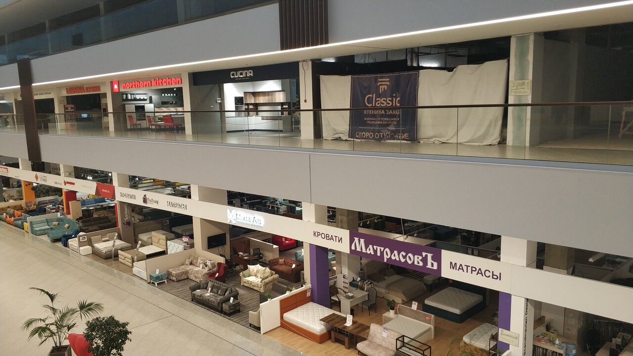 Самый большой трц мебели что мне доводилось видеть. Представленые модели мебели с широчайшим разбросом цен. Как говорится сч на вкус и кошелек. Я же закупаюсь в hoff, икея но поменьше. Резюме: если не знаете что хотите поставить в свою норку/дом/особняк но есть деньги и они жгут руки — то приходите сюда. Как минимум с частью вы тут расстанетесь и возможно вам это понравится.