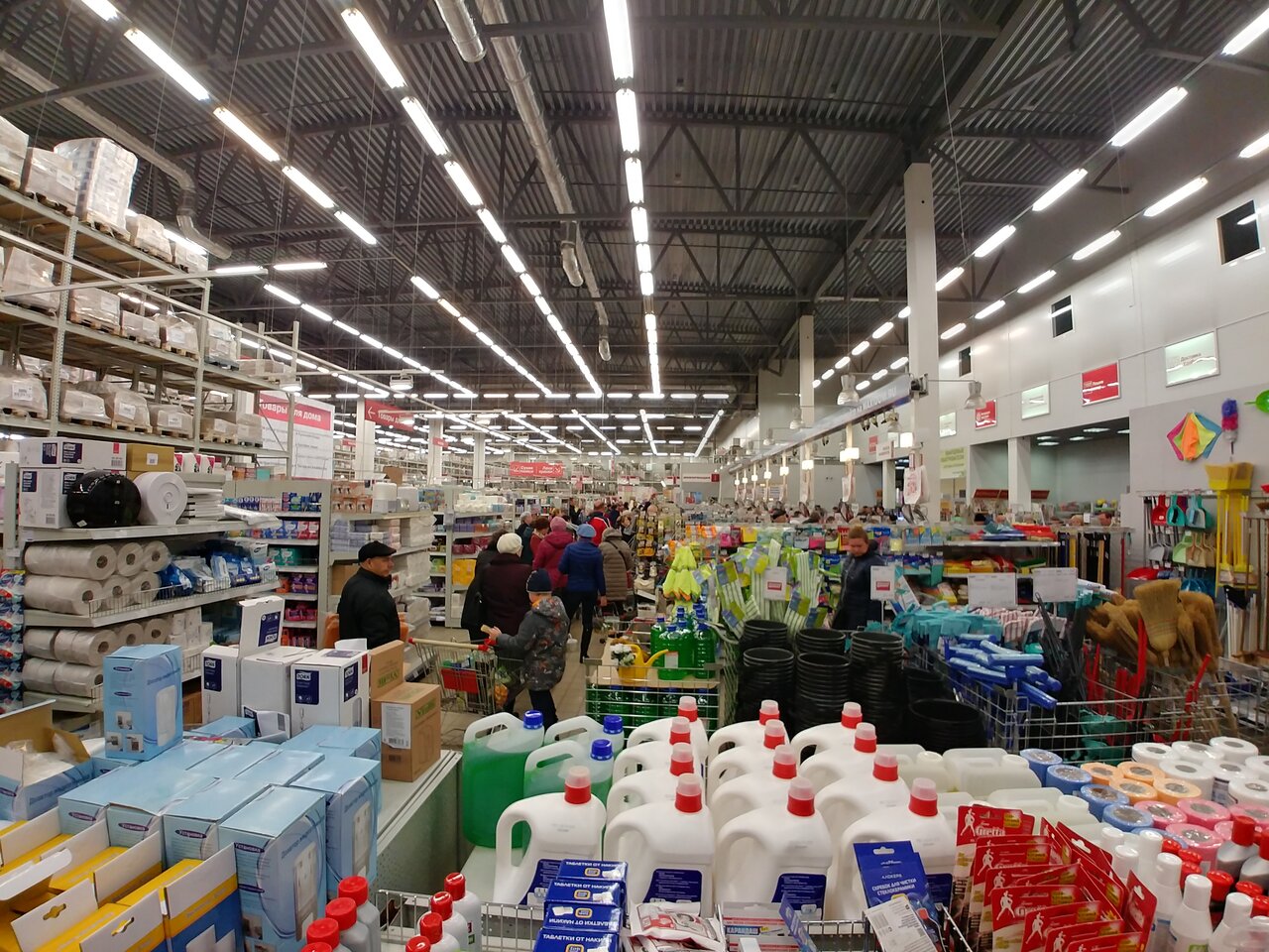 - Внимательные консультанты в отдельных отделах (например, постельного белья).; Отличный ассортимент товаров; Удобное расположение (рядом с домом); Демократичные цены (по некоторым отзывам); Частые скидки и акции