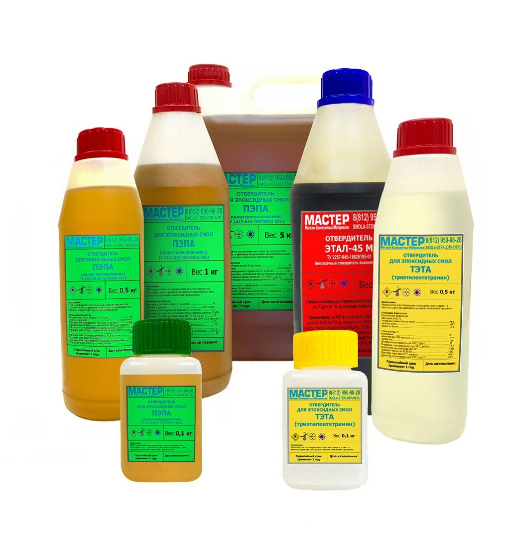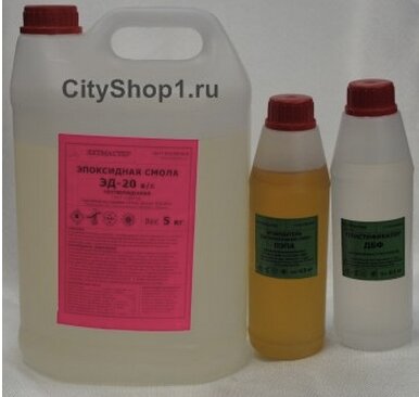 - Набор: Эпоксидная смола ЭД20 (5 кг) + отвердитель ПЭПА (0,5 кг) 7500₽