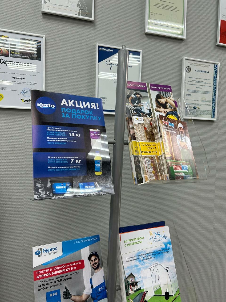 Это скорее склад, глазами тут много не увидишь, надо смотреть в интернете и потом получить здесь. Но прайс и ассортимент приемлимый, особенно для больших объемов стройки.
