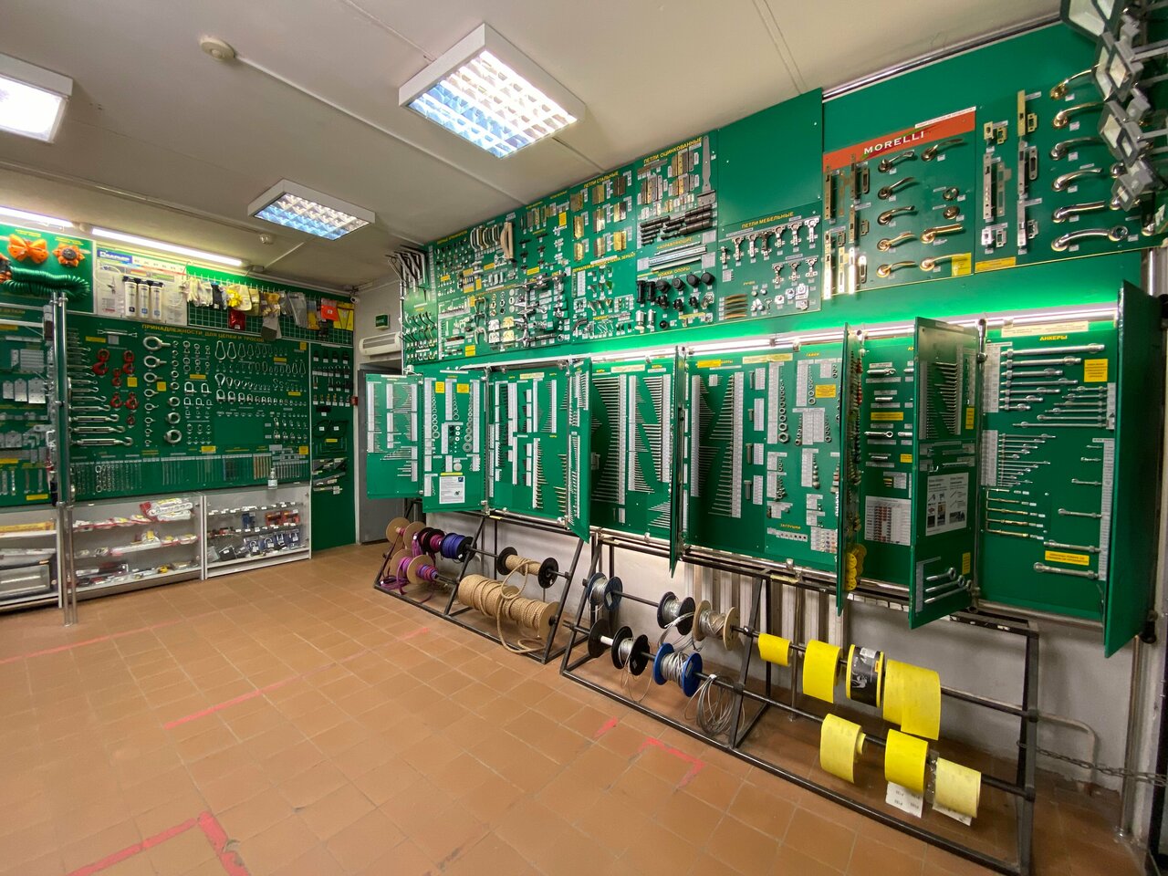 - Широкий ассортимент (метизы, крепеж, электрика, сантехника, инструменты и др.)
