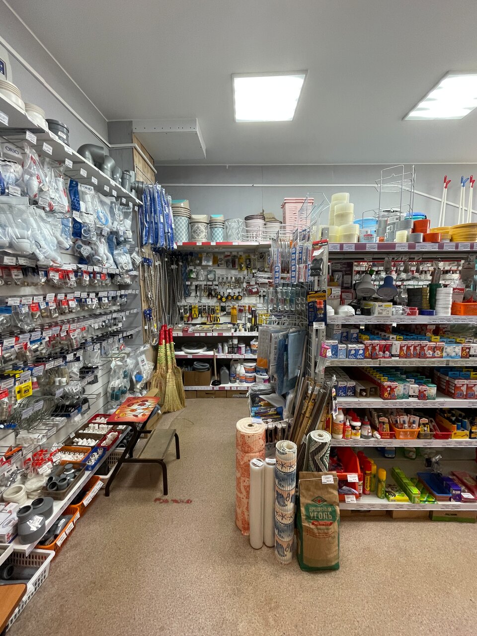 - Добавление новых категорий товаров (канцелярия, гардины и т. д.); Подходит для домашнего творчества и хозяйственных нужд.; Компетентные и вежливые продавцы; Есть необходимые мелочи для дома и ремонта; Большой ассортимент (от школьных принадлежностей до сантехники и электрики)