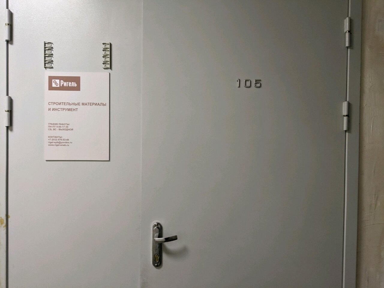 Ригель — строительный магазин в Санкт-Петербурге, расположенный по адресу: Большой Смоленский проспект, 12. Предлагает широкий ассортимент материалов, инструментов и товаров для строительства, ремонта и отделки. Режим работы: пн-пт 09:00–17:30. Контакты: +7 (812) 676-53-49, сайт: (http://rigel-snab.ru/).