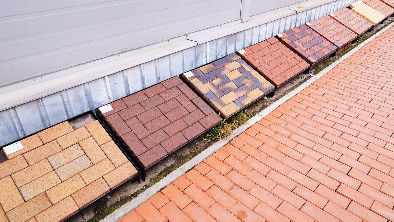 Строительный магазин, тротуарная плитка, кирпич