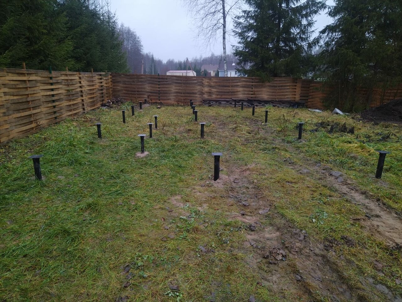 Установка забора на винтовых сваях