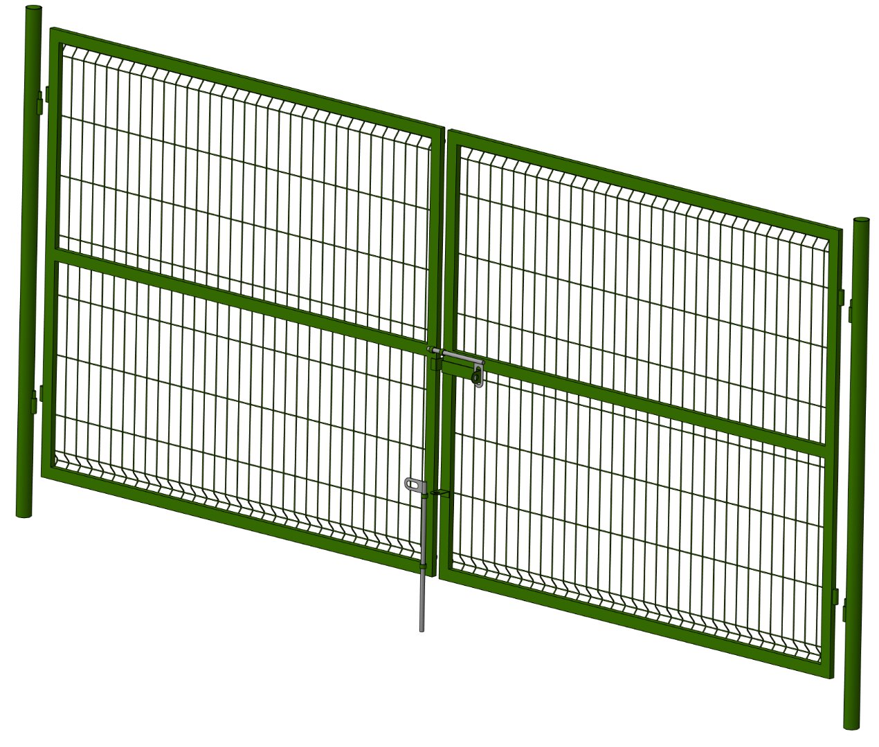 Ворота распашные 3D 'Стандарт' 2000x4000мм, со столбами с петлями 80х80 3м, ral6005 (зеленый мох)
