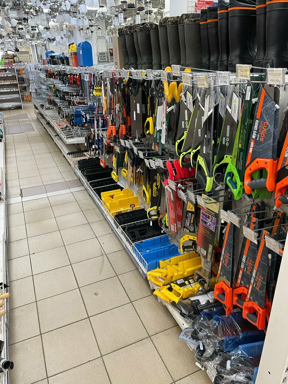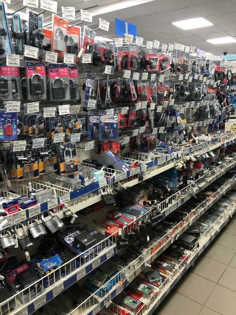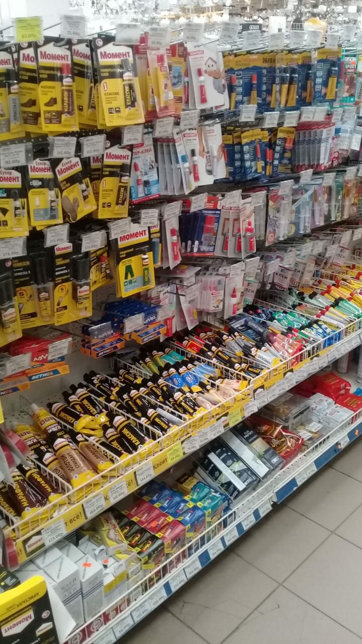 Хороший магазин со всём необходимым для ремонта и уборки после ремонта. Ценовую политику не обсуждаю, меня всегда жаба душит. Начиная от шурупа до унитаза, от клея до краски, от сверла до кастрюли, от вантуза до зубной щётки всё в наличии. Отсутствуют акции-заманухи, типа — купи верёвку -мыло в подарок. После кассы стоит охранник с суровым видом но добрыми глазами. Всём удачных покупок.