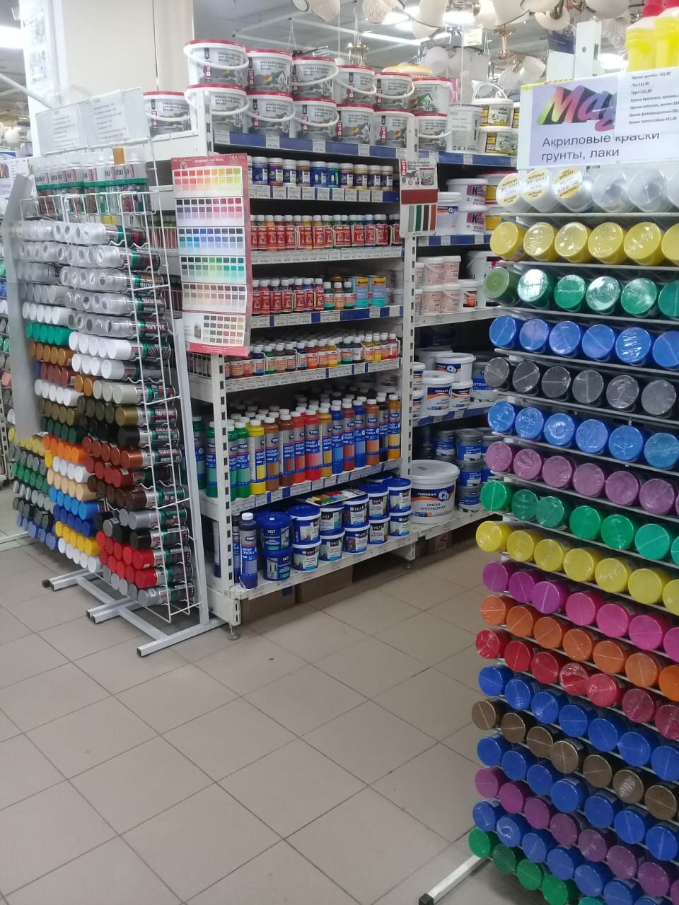 Магазин для единичных покупок. Всё можно найти дешевле в других профильных магазинах. Вежливость персонала оставляет желать лучшего. Зато всегда к чеку прикрепляют рекламку натяжных потолков)