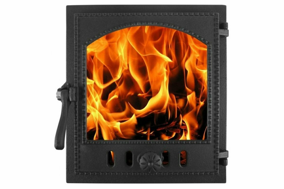 Чугунная топочная дверка.окрашеннаясо стекломгерметичнаяРазмеры:фасадный: 315х270 ммпосадочный: 250x210 мм