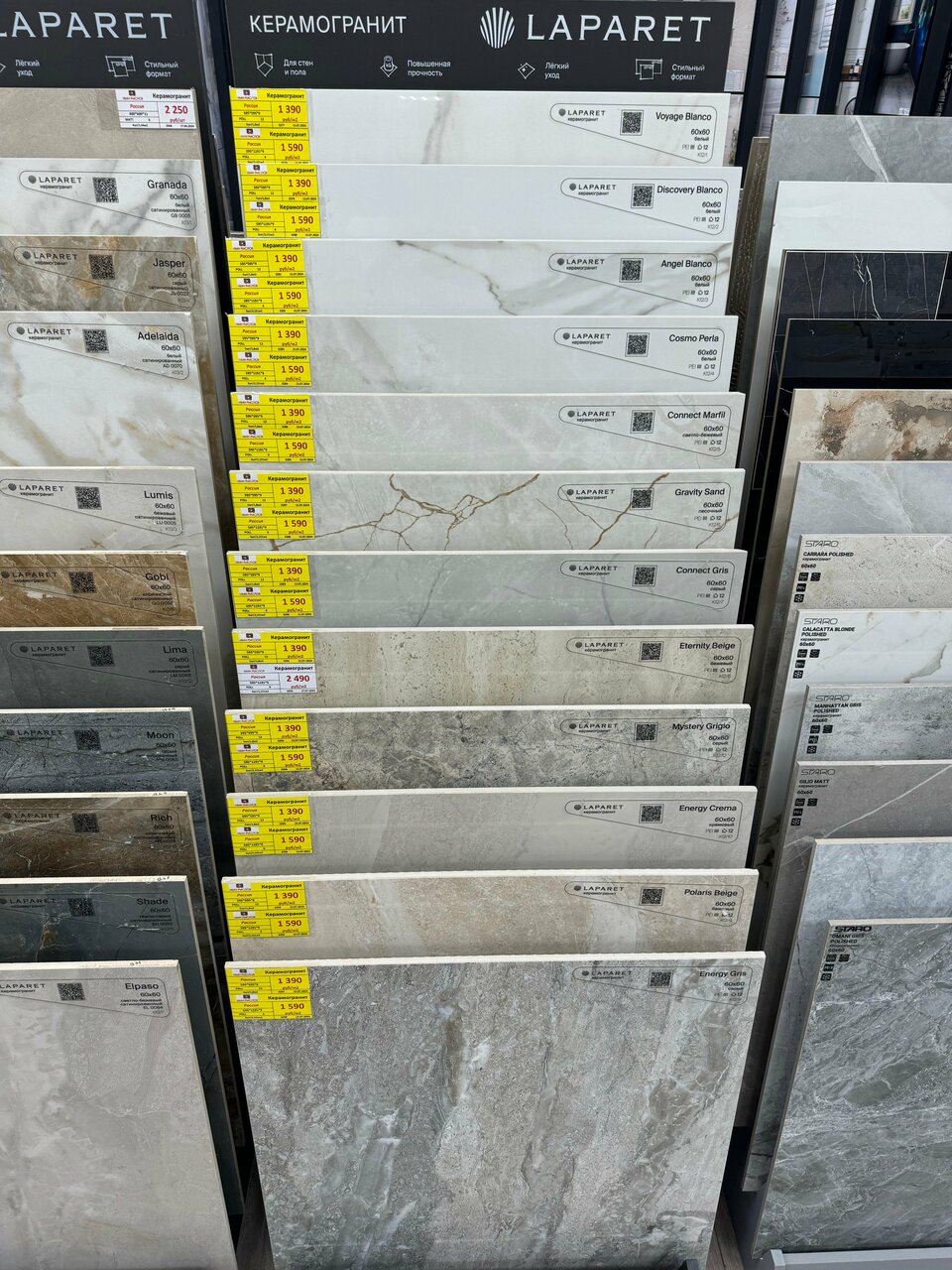 - Огромный ассортимент керамогранита и плитки