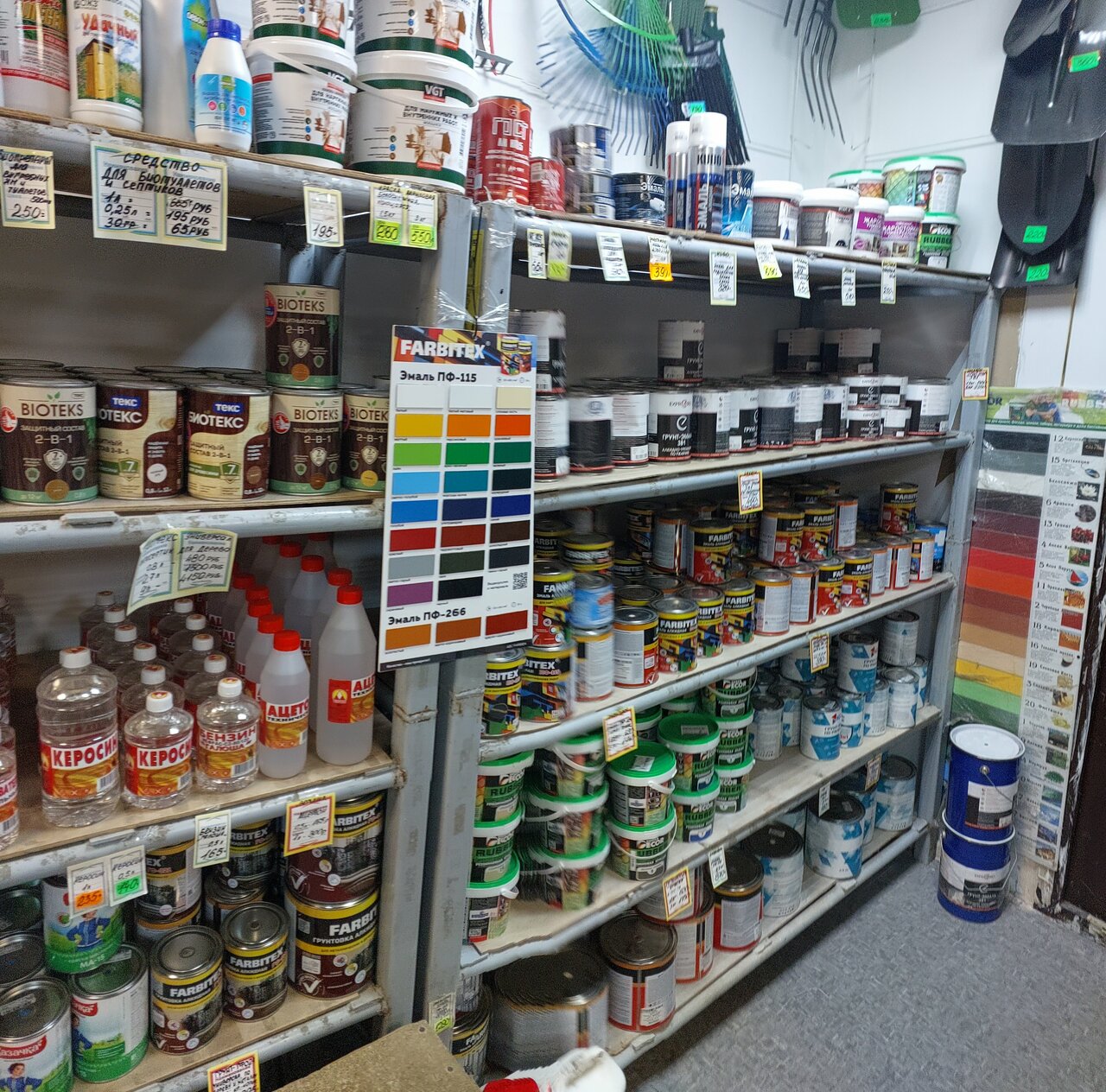 - Разнообразный ассортимент (метизы, дерево, металл)