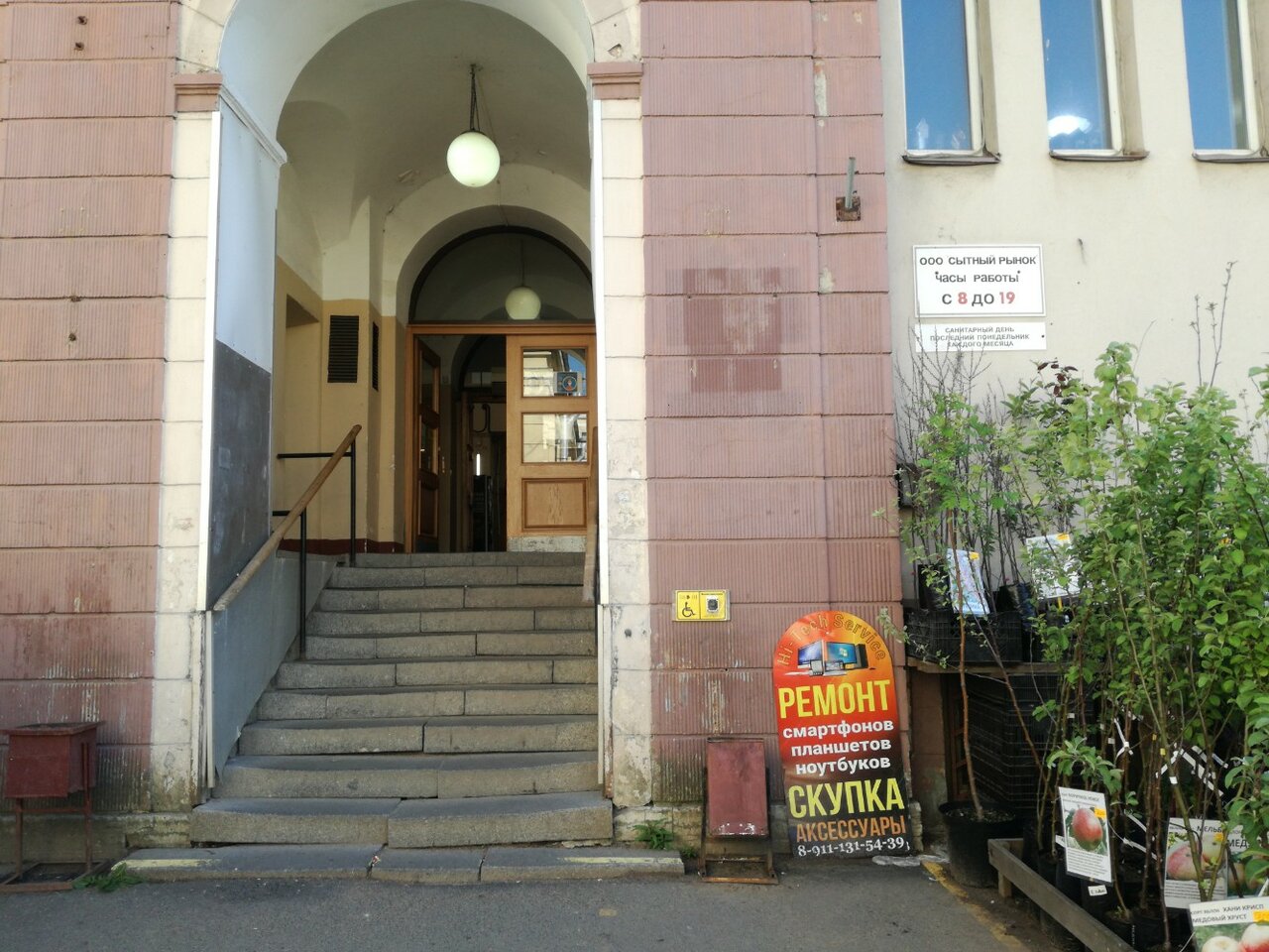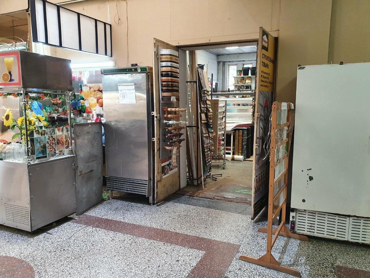 - Находится в здании рынка, есть ступени