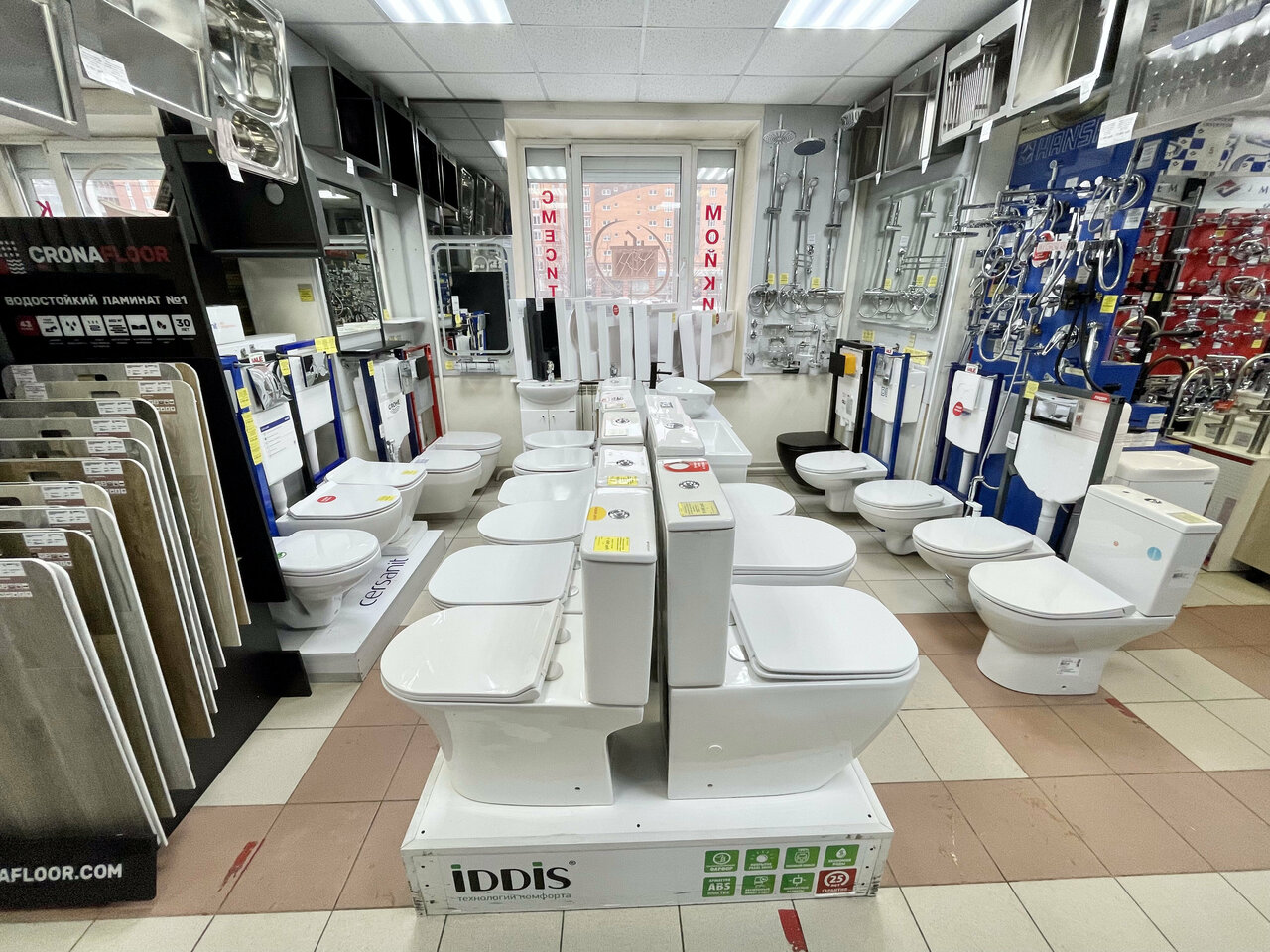Большой, но при этом уютный магазин. Очень квалифицированный персонал ( были у меня технические вопросы по монтажу инсталляции). Хорошие цены , дешевле не нашла сравнивала с маркетами. Осталась довольна покупкой