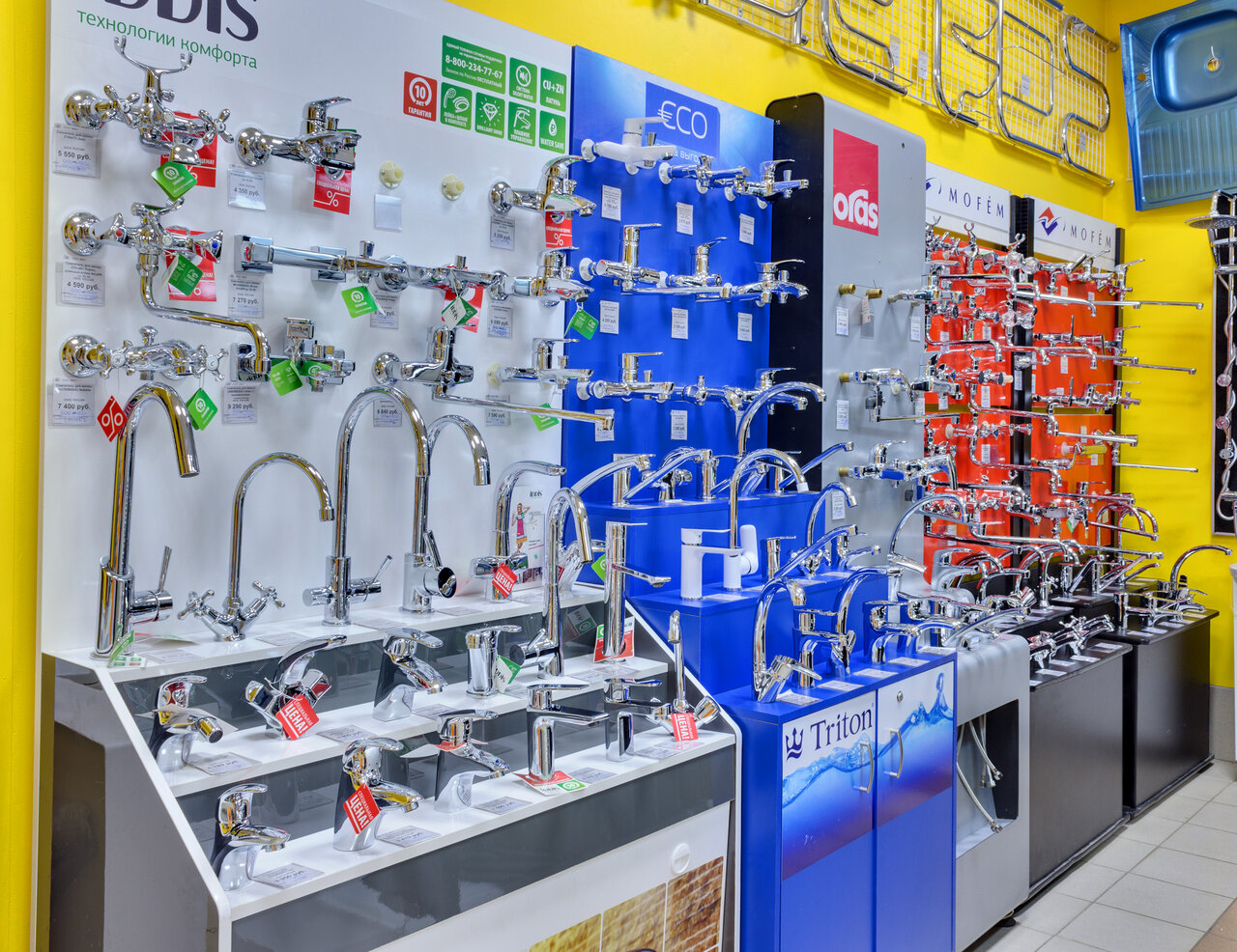 - Большой выбор плитки, сантехники, смесителей