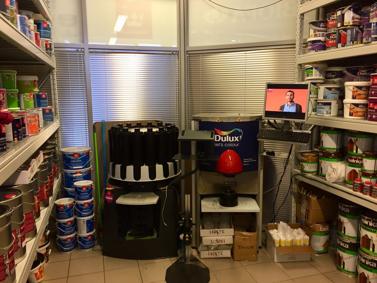 Покупал в этом магазине лакокрасочных материалов краску Dulux Vinyl Soft Sheen в количестве 10 штук. Очень принято то, что доставили по адресу очень быстро и бесплатно), сервес вполне себе неплохой!