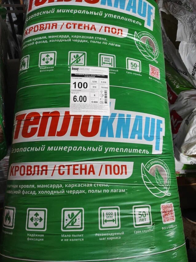 РОКЛАЙТ плиты минераловатные, упак 1200*600*50 мм, 0,288 м3/2,88 м2/8 плит в упак.