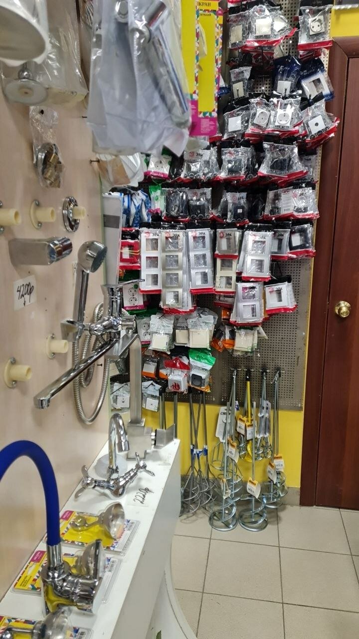 Небольшой магазин строительных и хоз материалов. Полезен когда по мелочи что-то перехватить нужно. Основное, понятно, в других местах брать нужно.