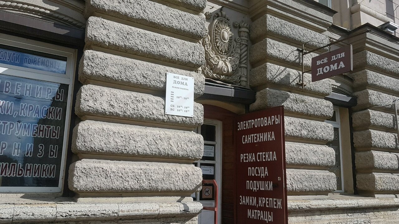 «Всё для дома» — строительный магазин в Санкт-Петербурге, предлагающий материалы, инструменты и товары для ремонта, строительства и отделки. Расположен по адресу: Малодетскосельский проспект, 29. Режим работы: пн-пт 10:00–19:00, сб 10:30–19:00. Контактный телефон: +7 (812) 746-87-94.