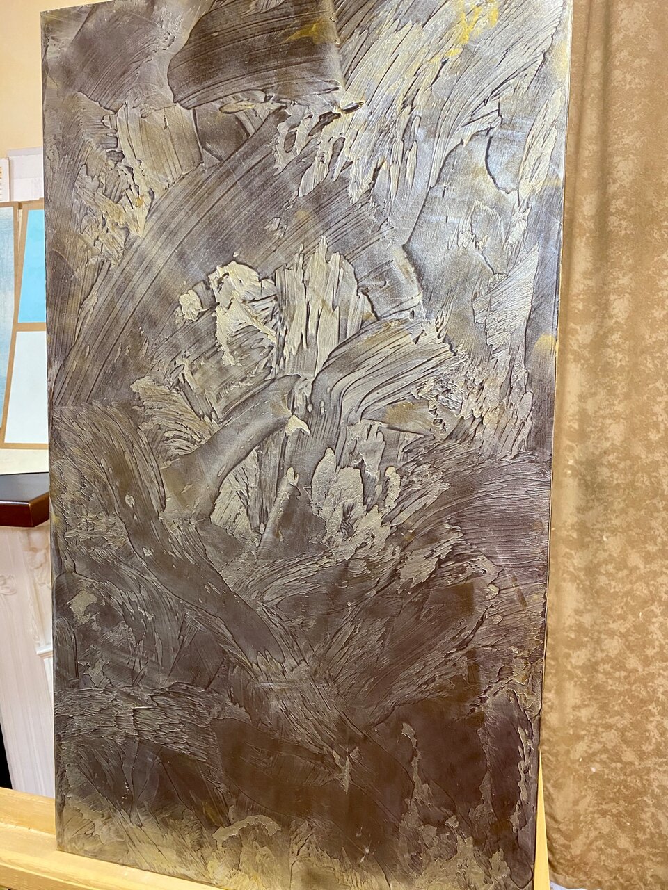 Смог подобрать декоративную штукатурку и краску, за счет чего получилось создать оригинальную имитацию, которую и планировали в интерьере реализовать. ВЫбранные позиции были в наличии в нужном количестве, поэтому уехал сразу с покупками из магазина, доставкой не пришлось пользоваться