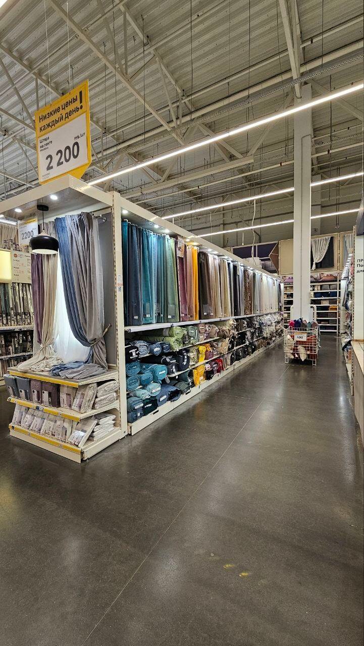 Очень большой ассортимент товара, приемлемые цены, удобная доставка, при возврате товара быстро вернули деньги. Как замечание — всего один оверлог, и на него очередь огромная.Покупала ковролин, хотела сразу же оверложить края, но эту услугу надо было ждать свыше 5 часов так как большая очередь, пришлось искать оверлог самой. Для такого большого магазина, который один в области, один оверлог это не серьёзно.