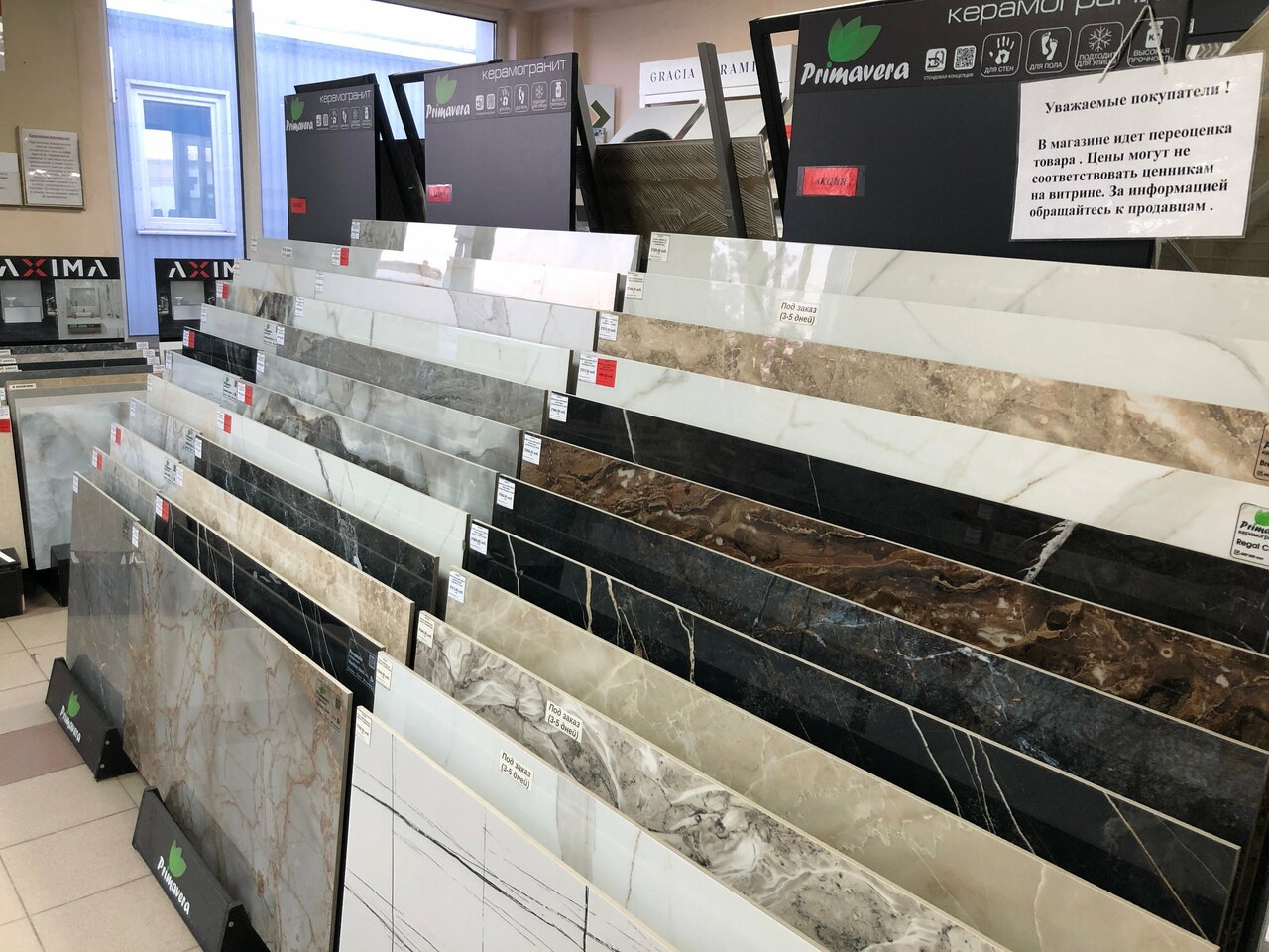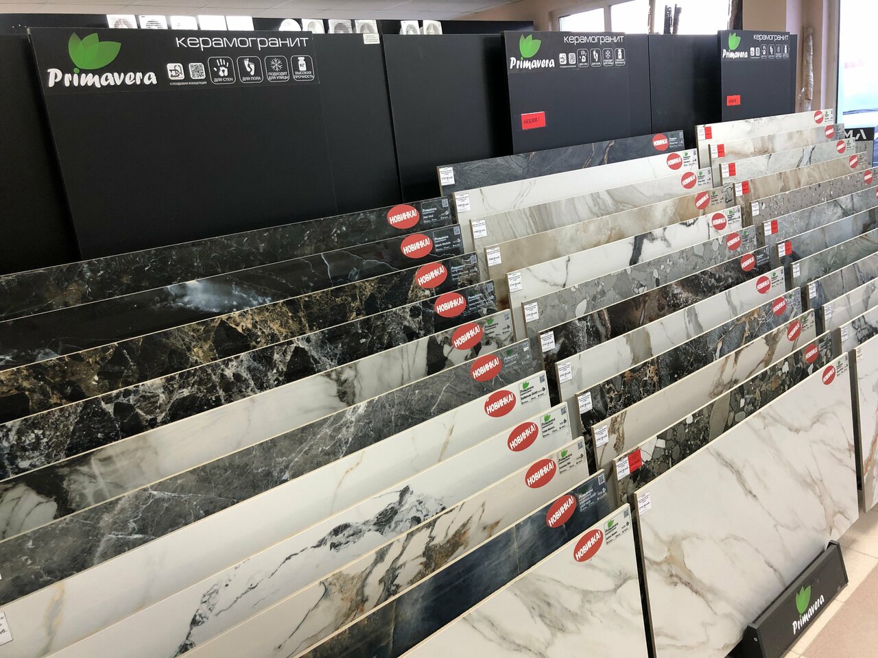 - Большой ассортимент плитки и строительных материалов