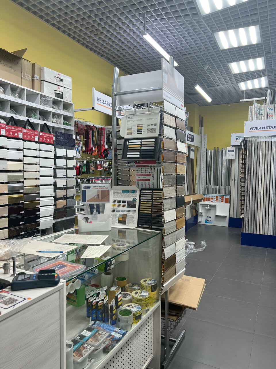 Хороший магазин, большой ассортимент. Очень вежливый продавец, помог подобрать цвет плинтуса. Все хорошо упаковал. Оплата наличными и картой.