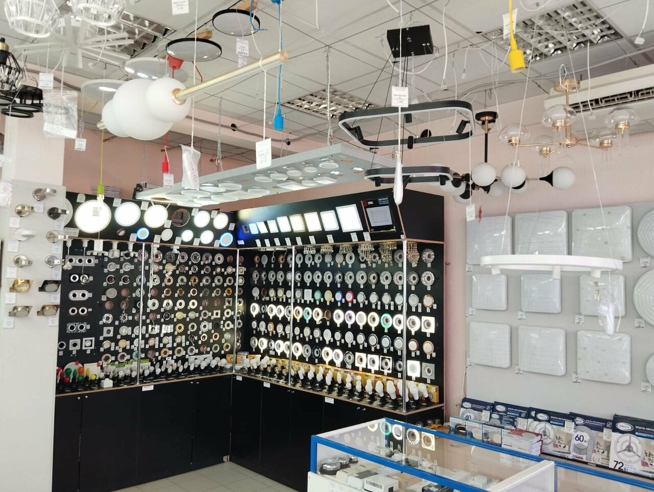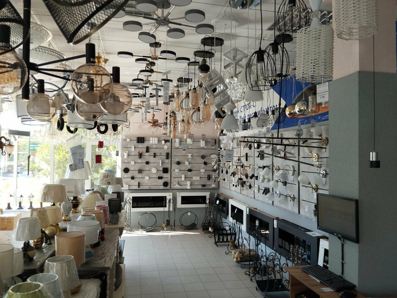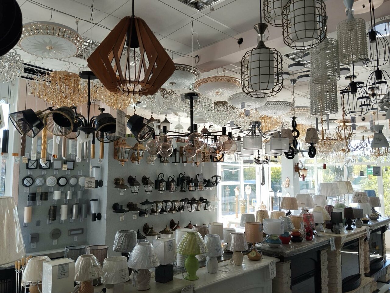 2 этажа люстр, бра, торшеров, каминов, лампочек, электрических причиндалов. Нравятся продавцы на 1 этаже за грамотные рекомендации при покупке всяческих электрических премудростей. Удобный обзор, много чего можно включить, оценить рабочие качества.