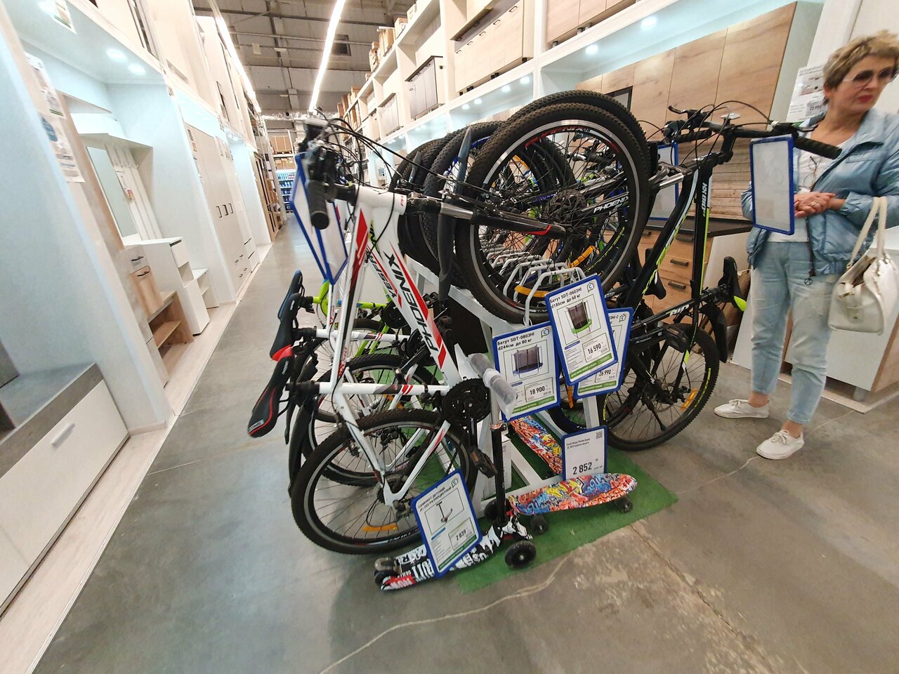 Выбор товаров. Очень грамотные консультации менеджеров, особенно в ‘сантехнике’, служба доставки. Только вот за тележками надо следить получше, пока катались по залу одно колесо отвалилось. К счастью ничего не уронили.