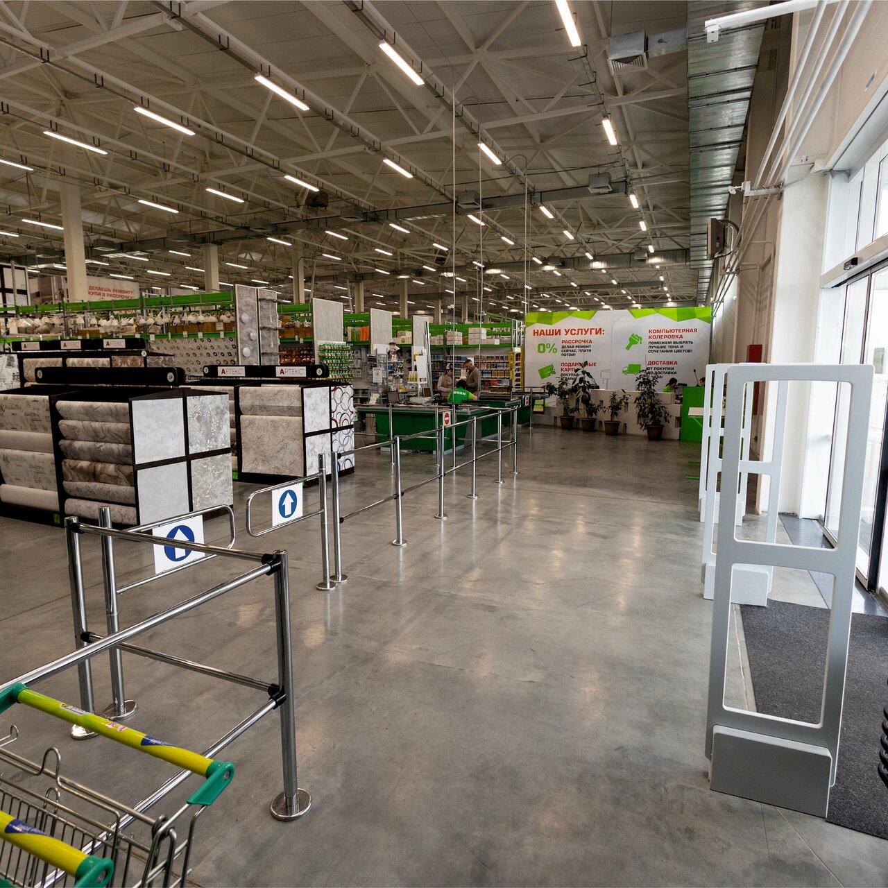 Большой и современный магазин строительных материалов, довольно компетентный персонал. Выбор — огромный, можно найти все для ремонта и уюта.