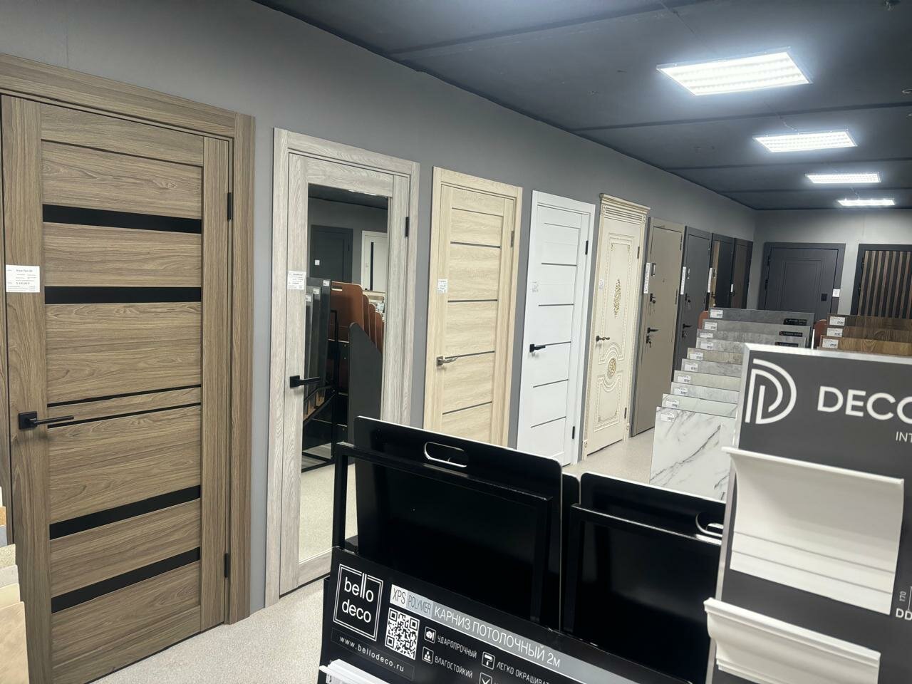 - Возможность купить несколько товаров (полы, двери) в одном месте