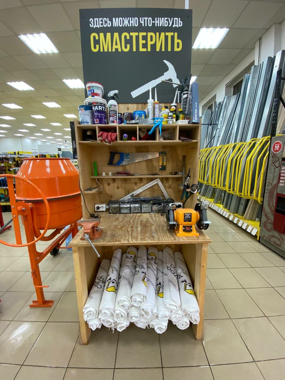 Странный магазин. Идея неплохая, но недоработанная. Поставили столики с менеджерами, но почему-то забыли поставить рядом стулья для посетителей. Многого из ассортимента нет в наличии. Хотел купить фанеру, но на складе выяснилось, что хорошего качества фанеру отдадут ранее оплатившему клиенту, а мне могут выдать только совершенно другого, более низкого качества. На некоторые позиции товаров вполне неплохие цены. Доброжелательность менеджеров, приятно радовшая в первые месяцы после открытия, через год работы растаяла…