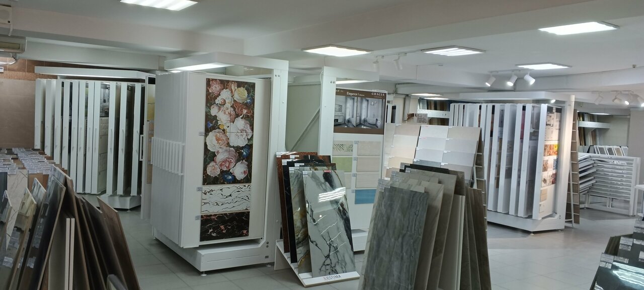 Отличный магазин. Цены адекватные, на некоторую плитку даже дешевле чем в больших строительных супермаркетов таких как добрострой или новацентр, и выбор нормальный, и не только плитки, так же видела и ковры, покрытия, и много других мелочей для ремонта, сейчас конечно подробно не вспомню уже, но кто делает ремонт, рекомендую заскочить и глянуть!