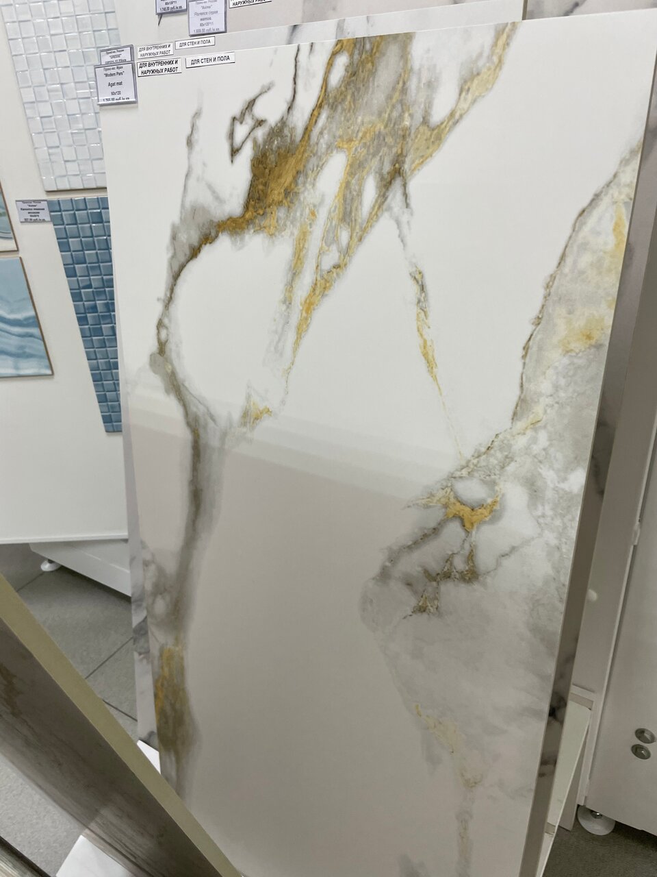 - Большой выбор керамической плитки, ковров, линолеума