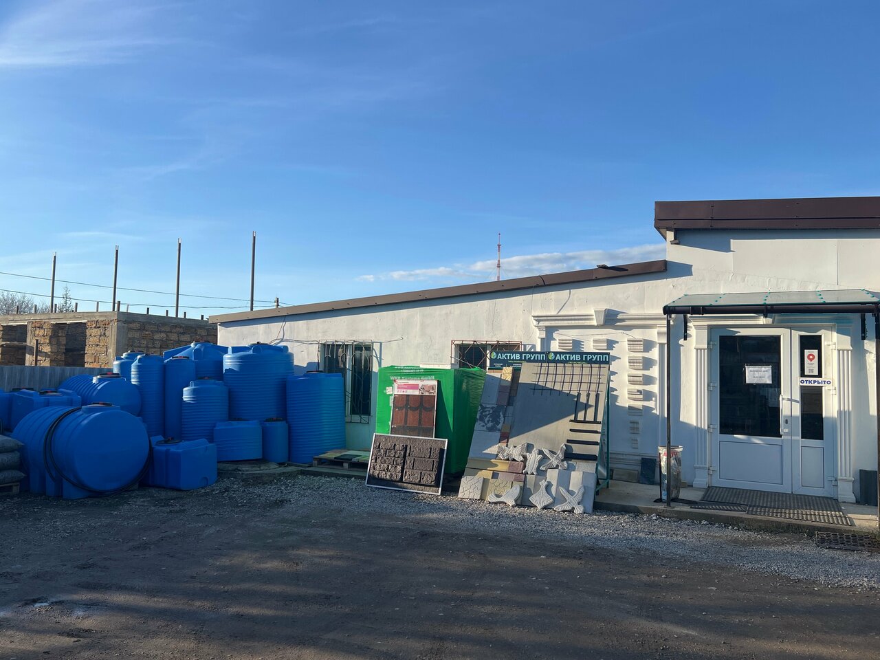 Основные категории товаров: газобетон, ЦСП, шлакоблоки, полиуретановая лепнина, алюминиевые композитные панели, природный камень, асбест.