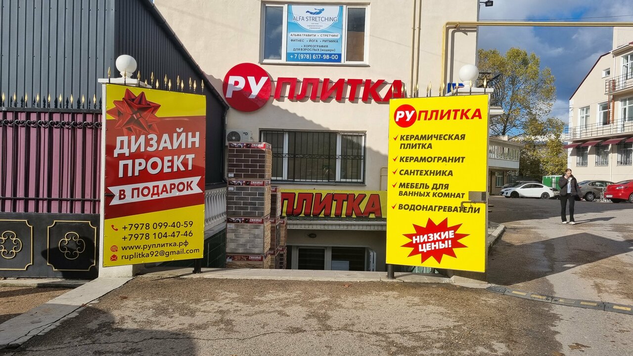 Адрес: пр. Генерала Острякова, 166В Режим работы: Пн–Пт: 09:00–18:00 Сб–Вс: 10:00–16:00 Телефоны: +7 (978) 099-40-59, +7 (978) 104-47-46 Сайт: (http://руплитка.рф/)