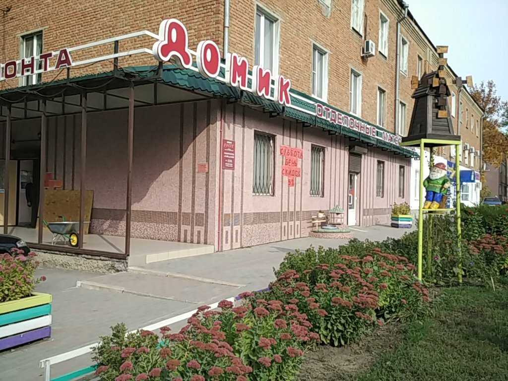 «Домик» — строительный магазин в Шахтах (пр. Чернокозова, 150). Ассортимент включает материалы, инструменты и товары для строительства, ремонта и отделки. Режим работы: пн–сб с 08:00 до 18:00. Контакты и сайт не указаны.