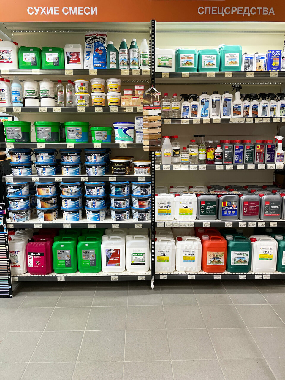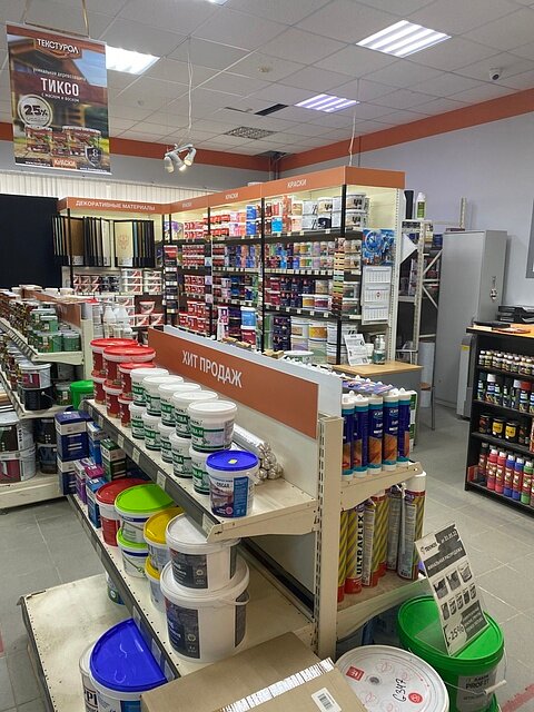 Хороший магазин. Краски, шпатлевка свежие. Продавец уважительный обьясняет и помогает клиенту подобрать необходимый материал.