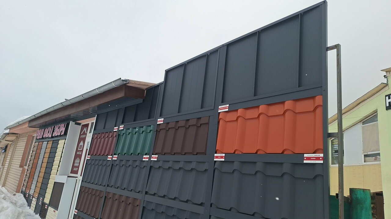- Большой выбор кровельных и фасадных материалов
