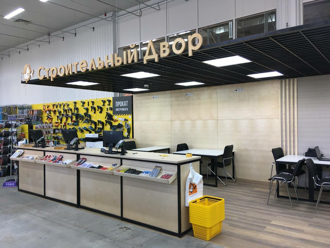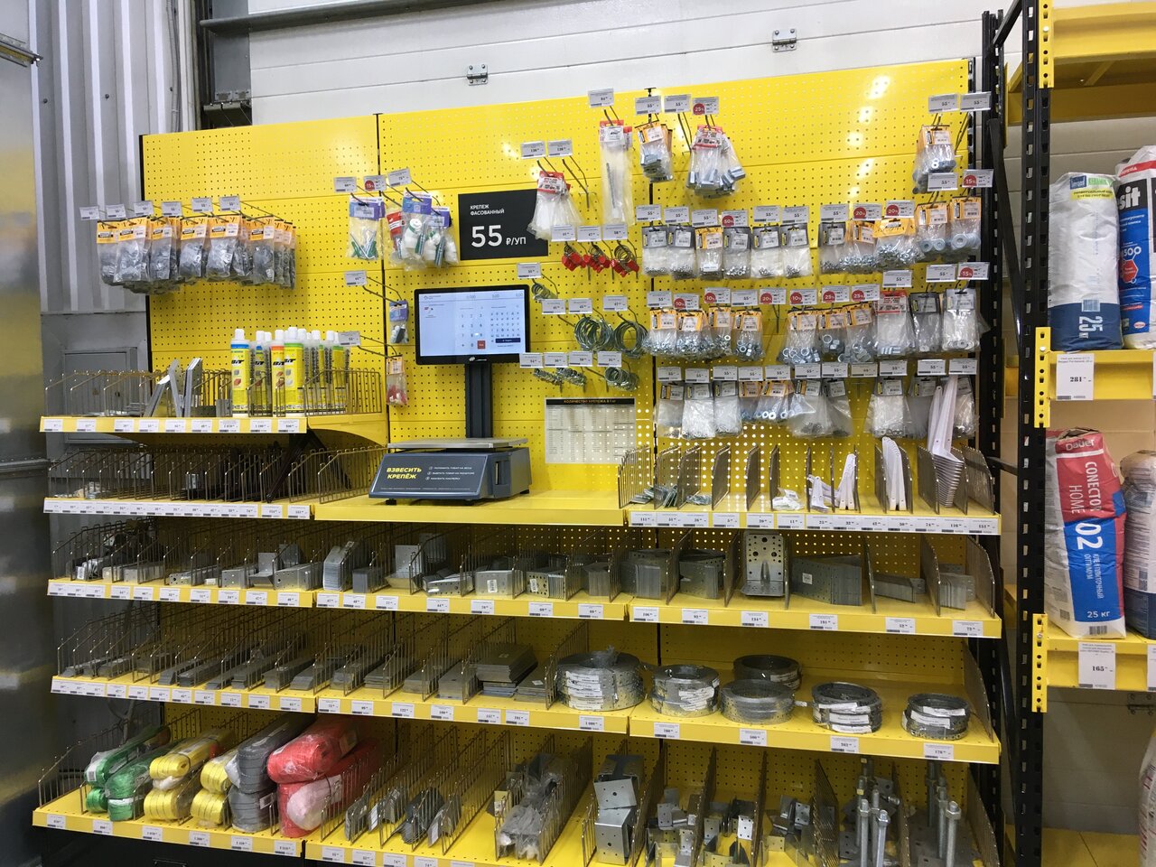 Нормальный строймаркет. Но…, чтобы купить три наименования товаров надо пройти сам магазин и ещё два склада — итого три круга
