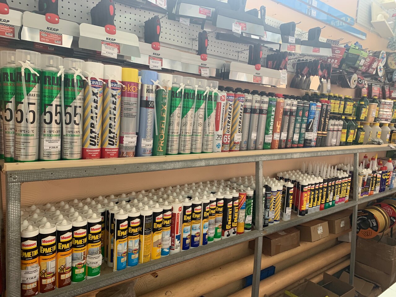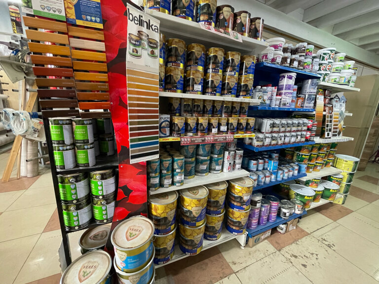 Большой выбор товаров. Есть миксер для кооеровки красок. Если чего-то нет, то всегда подскажут где купить тот или иной товар.