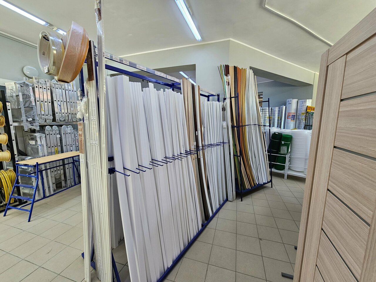 Магазин расположен далековато от центра и остановок общественного транспорта. Лучше приезжать на машине, парковок достаточно. Очень нравится ассортимент по принципу ‘все для ремонта здесь’. Много лет пользуемся товарами от линолеума до пластика и пр. Крупногабаритный товар брали со склада при магазине, сотрудники помогали грузить. Если что для ремонта надо, лучшего трудно посоветовать!