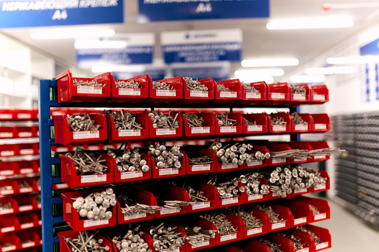 - Широкий ассортимент (все виды саморезов, болтов и т. д.)