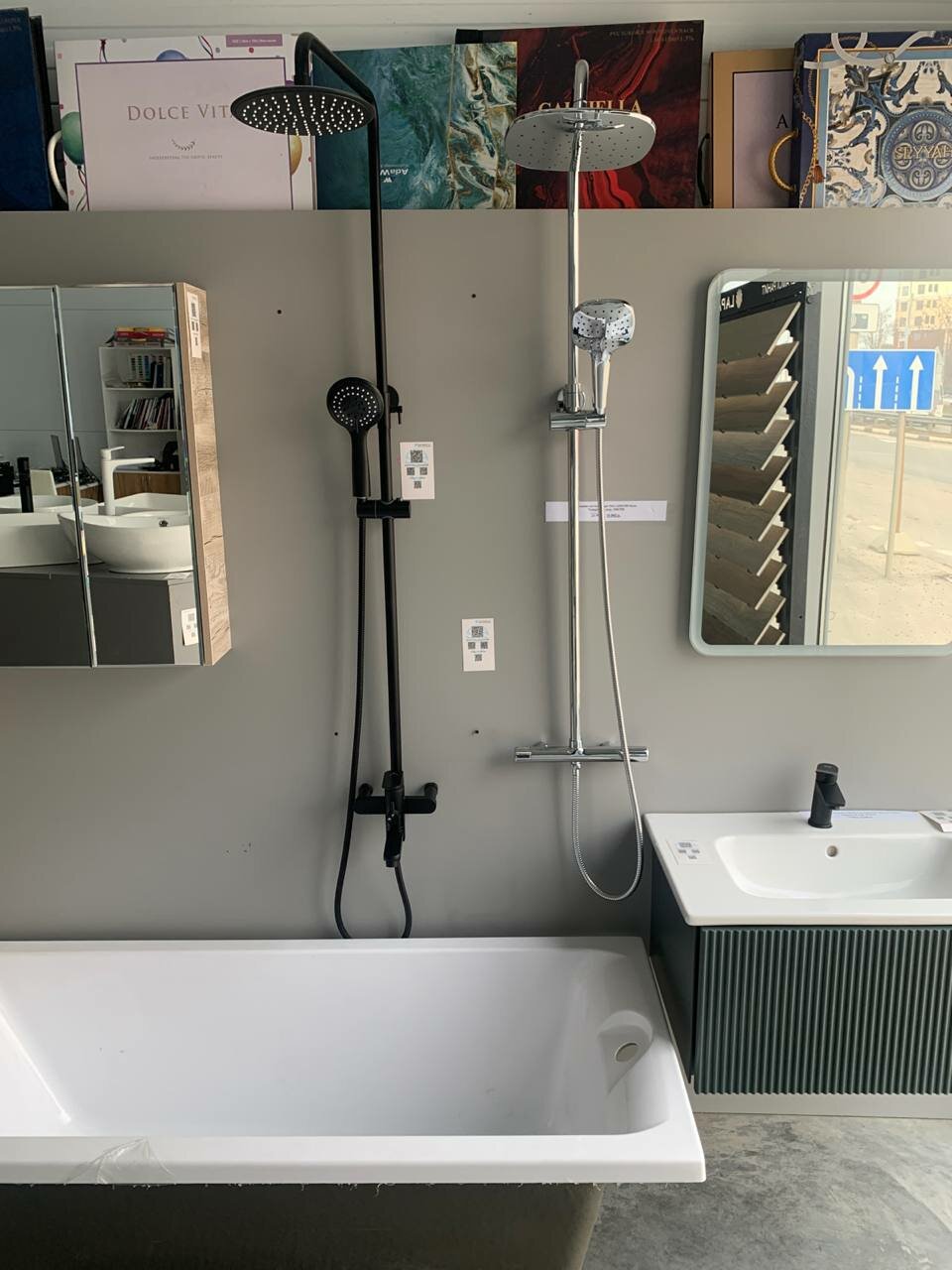 - Широкий выбор сантехники и плитки
