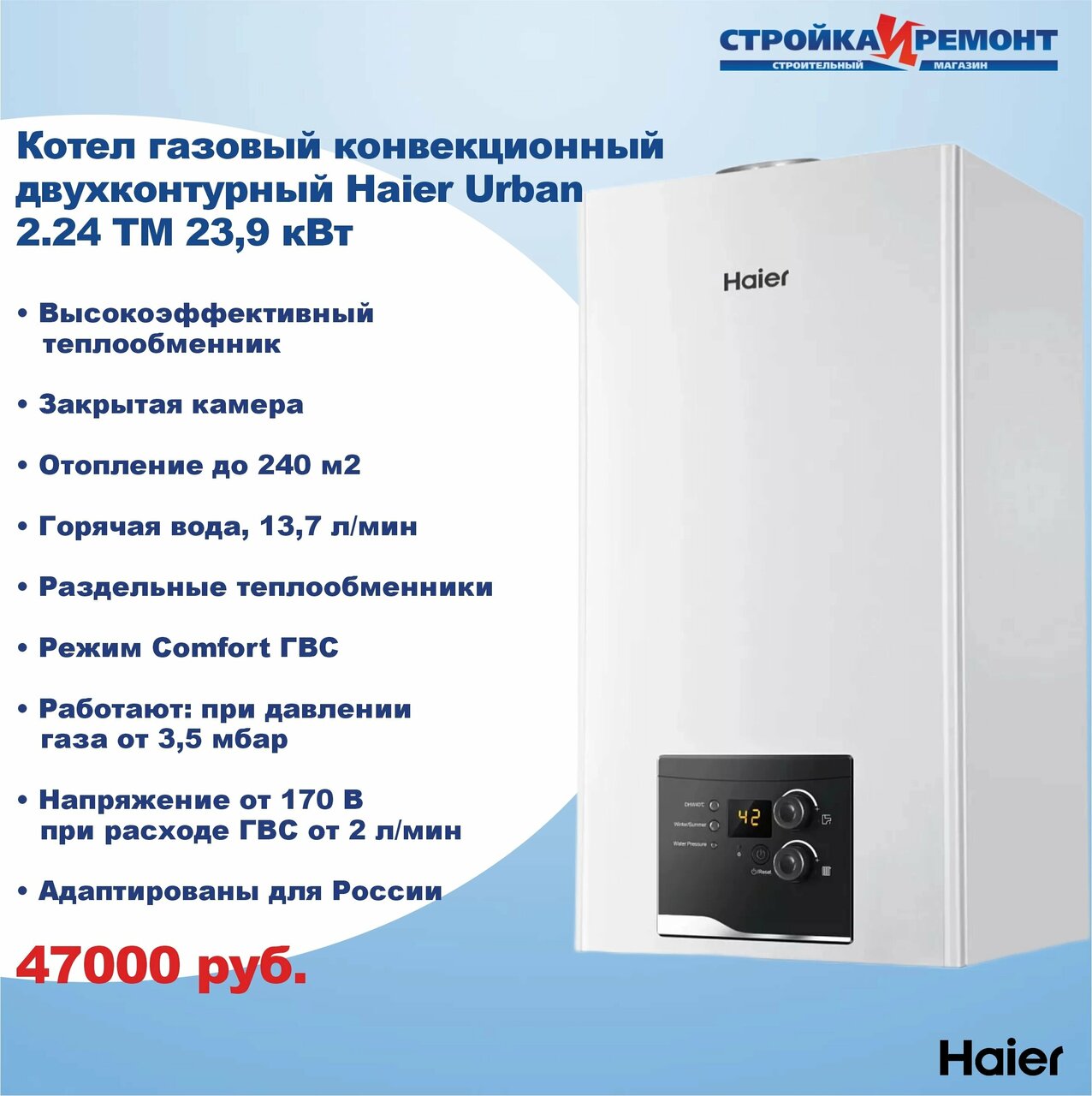 Стройка и Ремонт — строительный магазин в посёлке Сиверский (Ленинградская область), предлагающий широкий ассортимент дверей (входных, межкомнатных, раздвижных, противопожарных, металлических и др.), межкомнатных перегородок, стеновых панелей и инженерной сантехники. Расположен по адресу: ул. Вокзальная, 2А. Режим работы: пн-сб 09:00–19:00. Контакты: +7 (901) 132-09-61, сайт: (https://sir47.ru/).