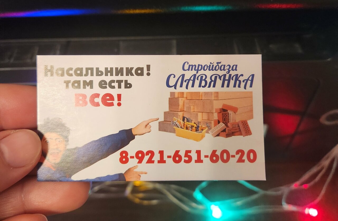 Стройбаза Славянка – строительный магазин в поселке Славянка, расположенный по адресу Речная улица. Ассортимент включает материалы, инструменты и товары для строительства, ремонта и отделки. Работает ежедневно с 10:00 до 17:00. Контактный телефон: +7 (921) 651-60-20.