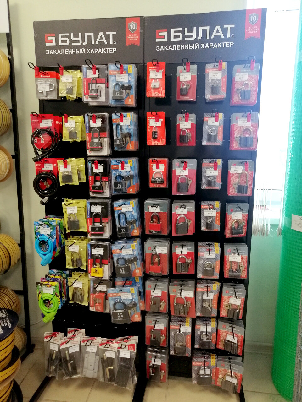 - Легкий обмен товара (без проблем); Быстрое обслуживание; Большой ассортимент; Хороший выбор материалов; Возможность колеровки краски на месте