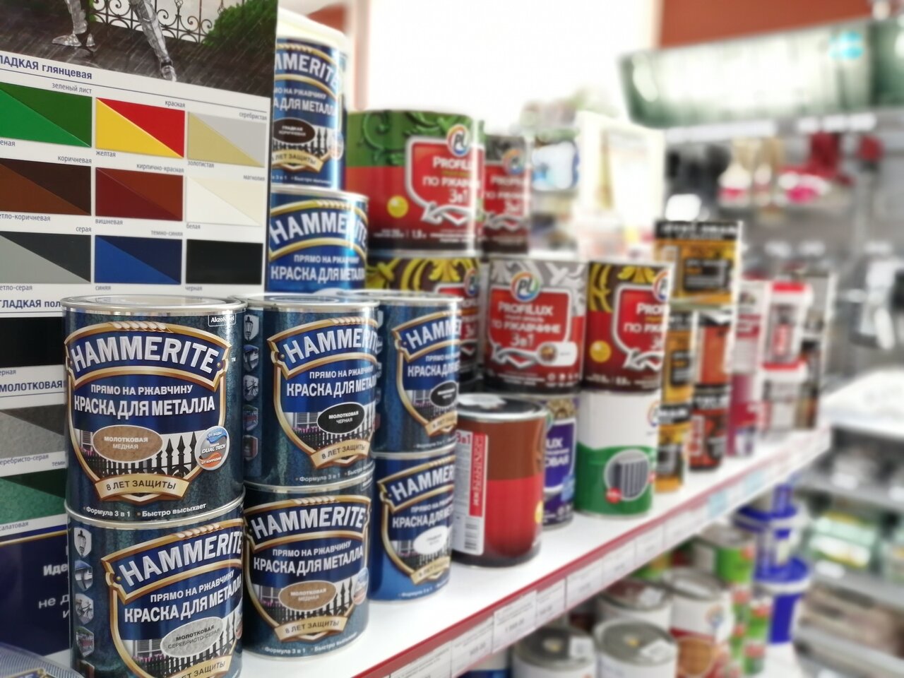 Большой ассортимент.Консультант очень толковый!Можно заколеровать,прямо на месте,краску нужного оттенка и цвета!